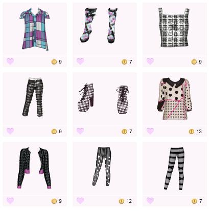 Wszystkie rzeczy są za sd. Ceny wahają się między 7 sd a 13 sd.